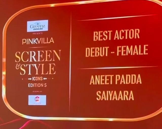 Aneet Padda received her first-ever acting accolade for her performance in Saiyaara.