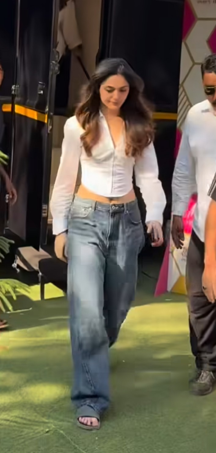 The viral "The Sequel" announcement look. Oversized denim jacket paired with a classic white tee and high-waisted denim. Accessories: Chunky silver heart toggle necklace and silver bracelet stacks to match the high-energy Pepsi vibe.